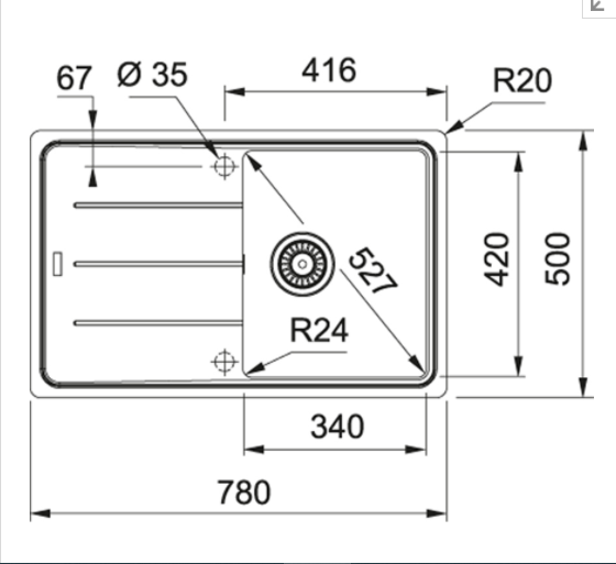 Spodní skříňka 450.00 mm Ventil 3 1/2'' sítkový Délka 780.00 mm Šířka 500.00 mm Rozměr dřezu 340.00 mm Rozměr dřezu 420.00 mm Hloubka dřezu 200.00 mm Výřez 760.00 mm Výřez 480 ...Více informací