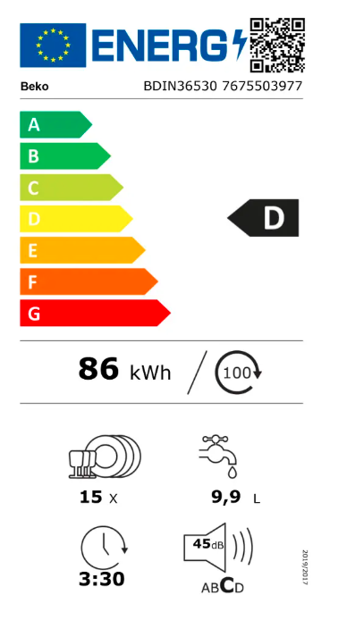 Plně vestavná myčka BDIN36530 od značky Beko vaše nádobí nejen čistě umyje, ale ještě ho vydezinfikuje. Její funkce HygieneIntense k tomu využívá páru, která proniká do všech záhybů a na konci mycího programu ještě spustí oplach horkou vodou navíc. Pára je ideální především na nečistoty a bakterie dětského nádobí. Lze ji použít i bez použití mycího prostředku, kterým plastové nádobí často načichá. Spotřebič spadá do energetické třídy D a jeho hlučnost je 45 dB, takže patří k tišším myčkám.