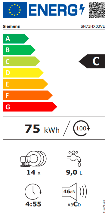 7Poznámka pod čarou 7: spotřeba energie v kWh na 100 cyklů (v programu Eco 50 °C)