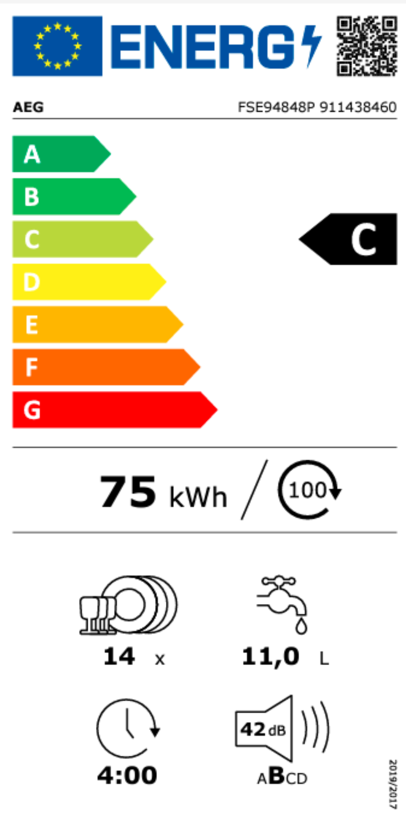 Kapacita mytí: 14: Podle normy IEC pro sadu nádobí. Jednou sadou nádobí je podle této normy: talíř, hluboký talíř, dezertní talíř, sklenice, čajový šálek s podšálkem, nůž, vidlička, polévková lžíce, dezertní lžíce a lžička.