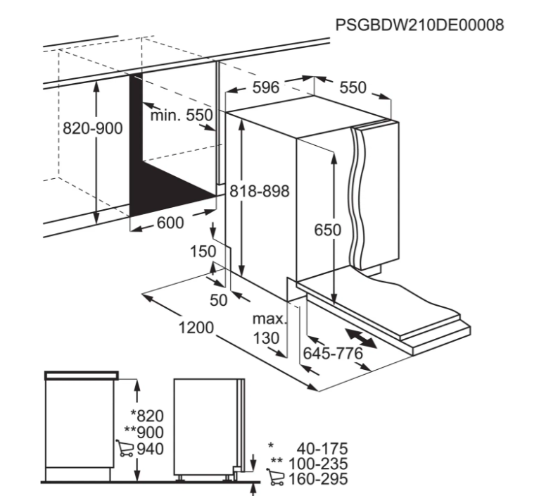 Vlastnosti Displej, Nastavitelné koše na nádobí, Rameno sahající do rohů