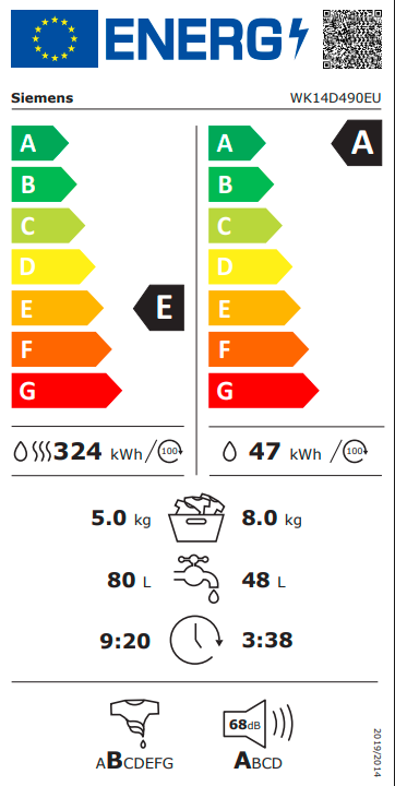 energie³ / voda⁴ praní a sušení: 324 kWh / 80 l