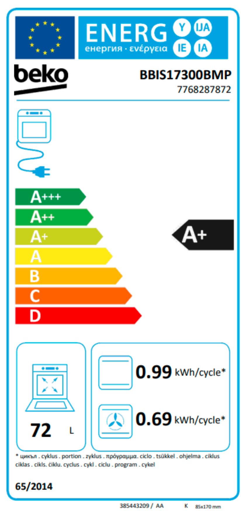 | Objem trouby L | 72 |