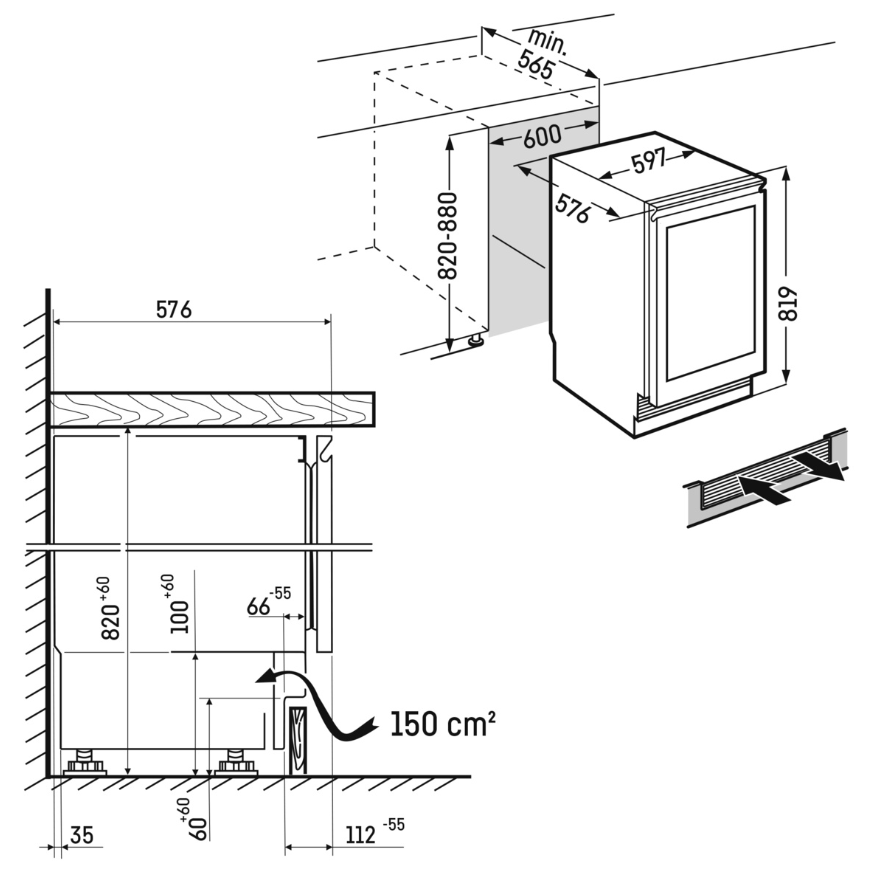 Chladnička na víno vhodná k instalaci pod stůl pro temperování vína